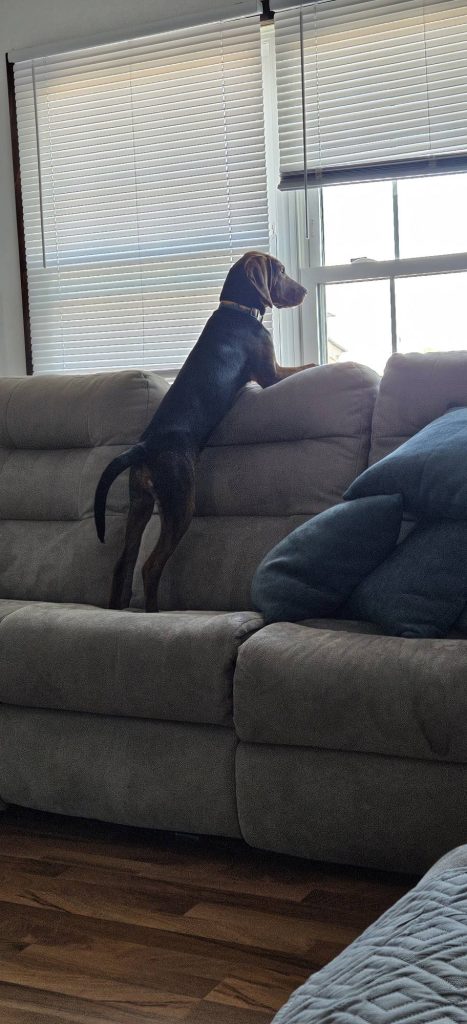 Reason for rehoming pet | Carl is a young hound and needs more activity and space than we can provide. He really needs a fenced yard. We have been trying to break his habit of mouthing people. It is not done in an aggressive manner. He needs someone who knows how to train him and keep him busy. |