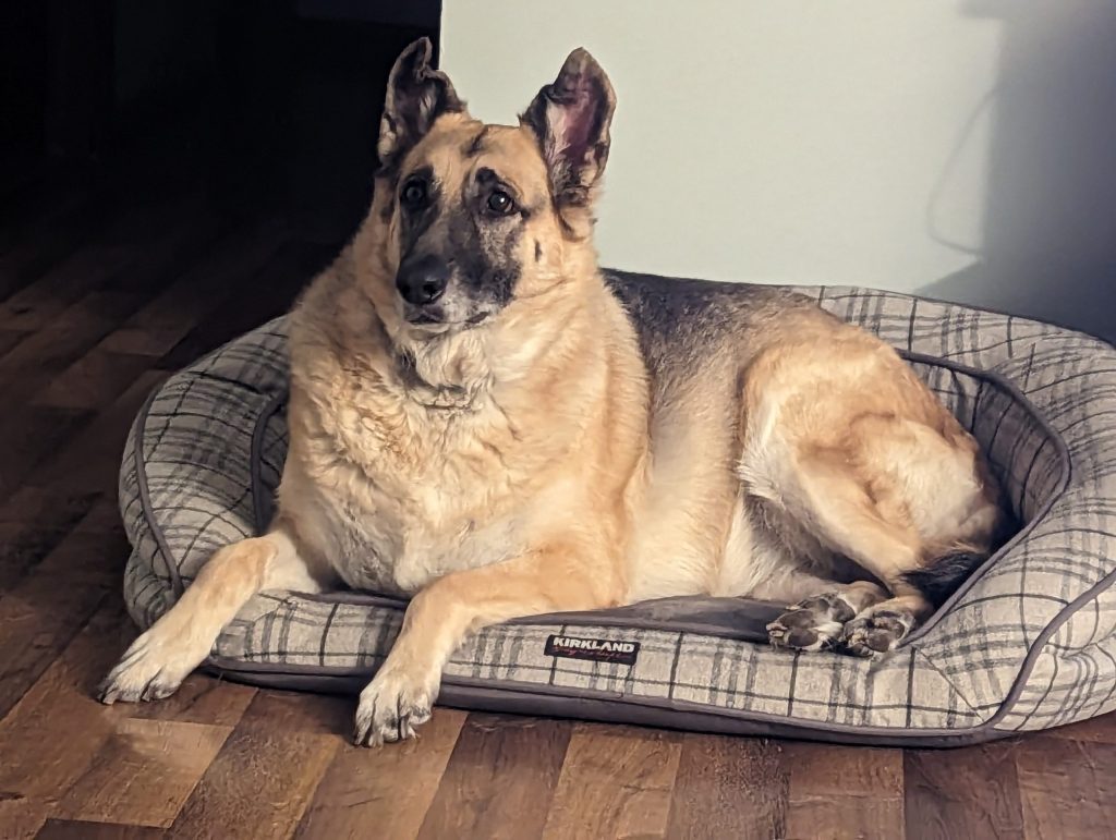 Reason for rehoming pet | I am going through a divorce and need to find an apartment to live in and have had trouble finding one that will accept German shepherds or even large dogs. I don’t have the financial ability to take care of her. To be completely honest, Maisie has extremely bad skin allergies. She gets over-the-counter medicine twice a day and I have a spray I use when she gets flare-ups. Maisie is overweight due to being on prednisone on and off throughout her life. |