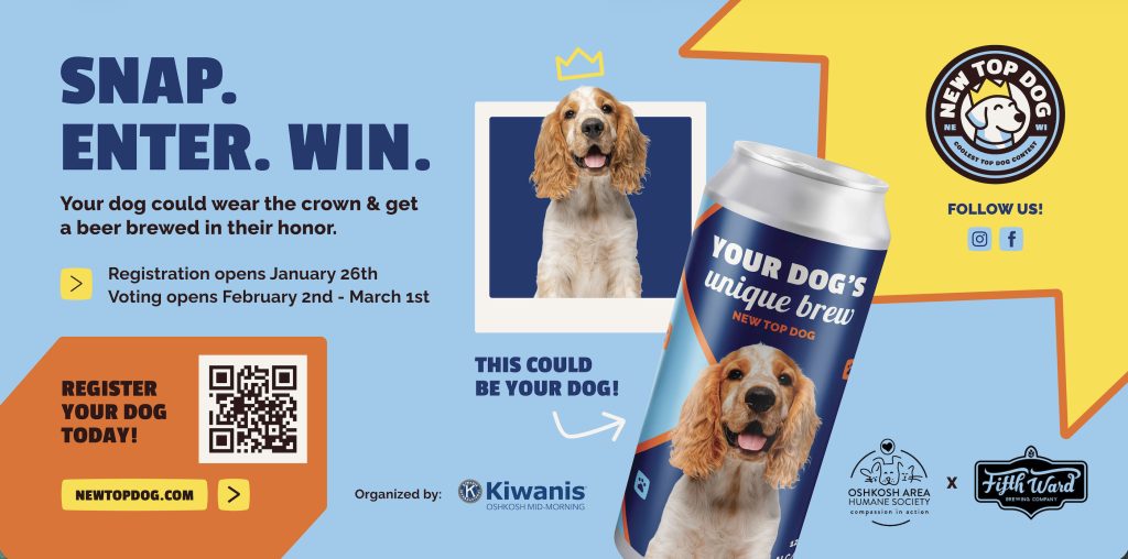 Dog owners enter a photo of their pup, rally votes from friends and family, and compete for prizes and a spot on a custom beer can from your favorite local brewery, all while raising money for pets and kids in Northeast Wisconsin.