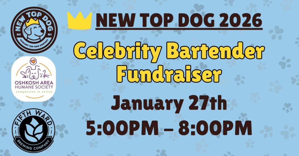 Tuesday, January 27, 5-8pm: Celebrity Bartender Fundraiser! Join us for a fun-filled evening! For one night only, the taps will be tended by special guest celebrity bartenders from OAHS. Enjoy your favorite Fifth Ward brews while cheering on the OAHS team, and help us kick off the NEW Top Dog Contest for 2026!