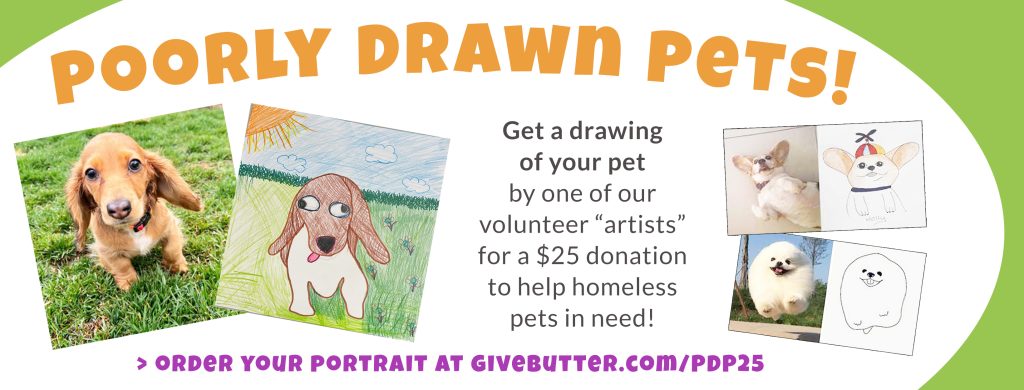 Here’s the deal: if you donate $25 to help the homeless animals in our care, we’ll draw your pet. The catch? We’re a whole lot better at caring for animals than we are at drawing them.