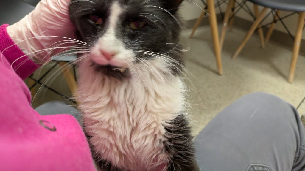Black with white, suspected to be neutered male with ear tip. Neighbors nearby said he used to wear a collar but unsure who the owner is. Please contact caregiving if you would like to confirm the identity or claim remains.